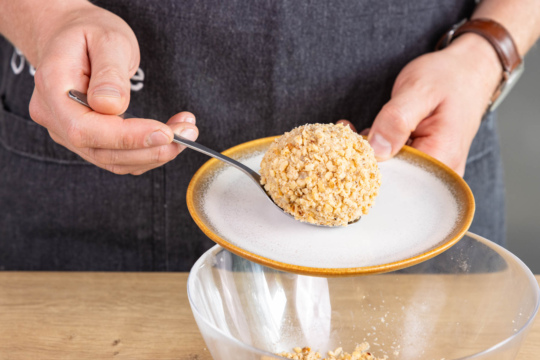 - Walnüsse – statt Haselnüsse passen auch gehackte Walnüsse zu den Nougatknödeln. Ersetze sie einfach in der Panade.