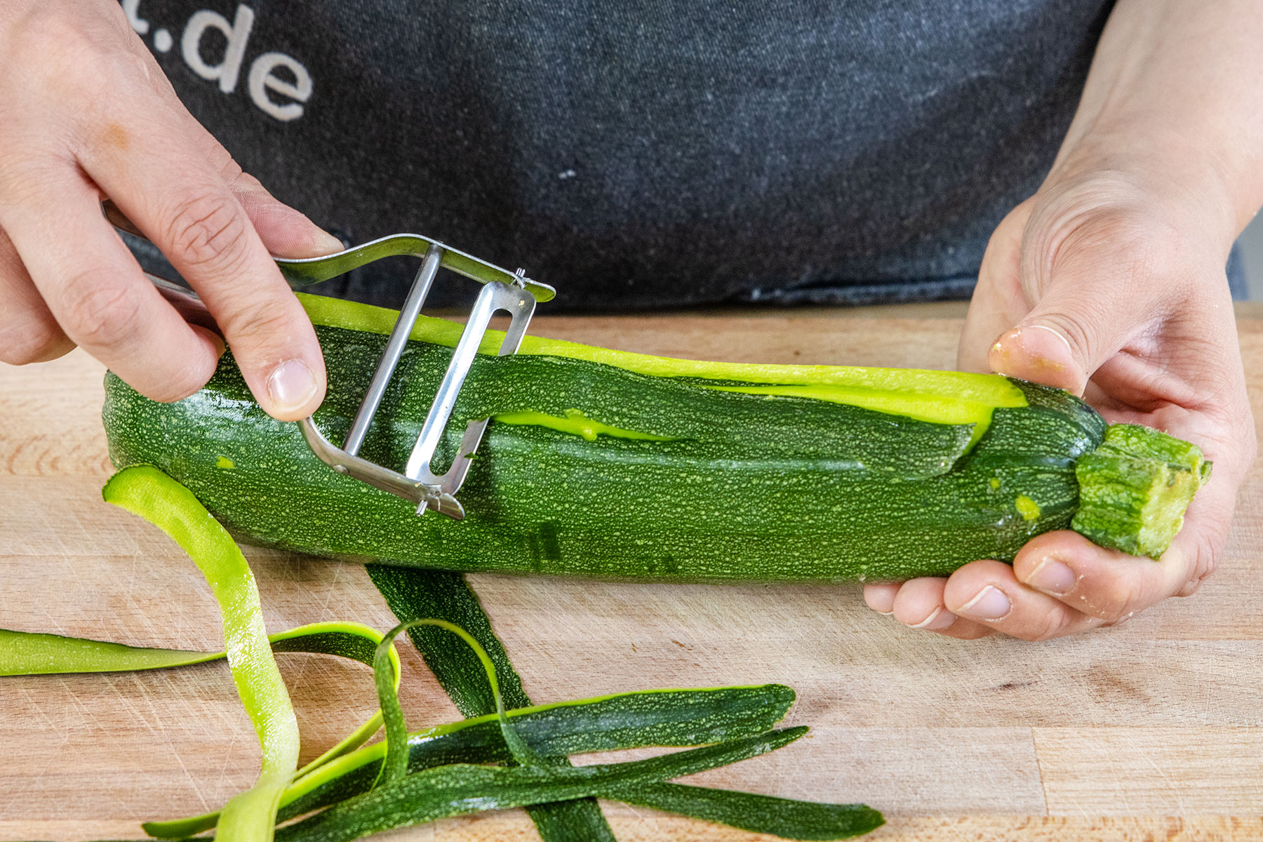 Anschließend das Öl und die Zucchiniraspel einrühren und den Teig auf dem Backblech verstreichen.