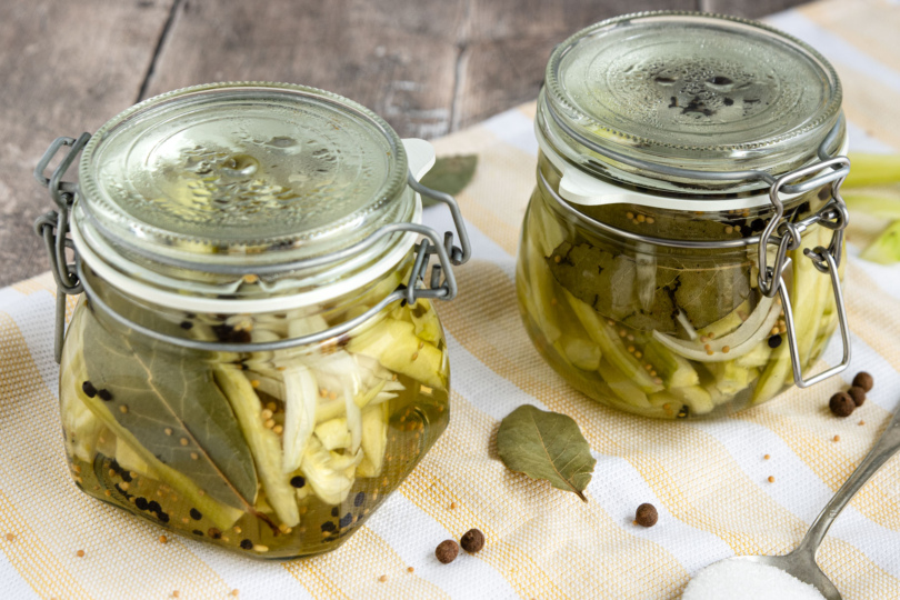 Überprüfe vor dem Einlegen der Schlangengurken unbedingt, ob deine Einmachgläser auch alle dicht sind. Wenn sie Luft ziehen, werden deine süß-sauren Gurken sonst schnell matschig oder sogar schlecht.