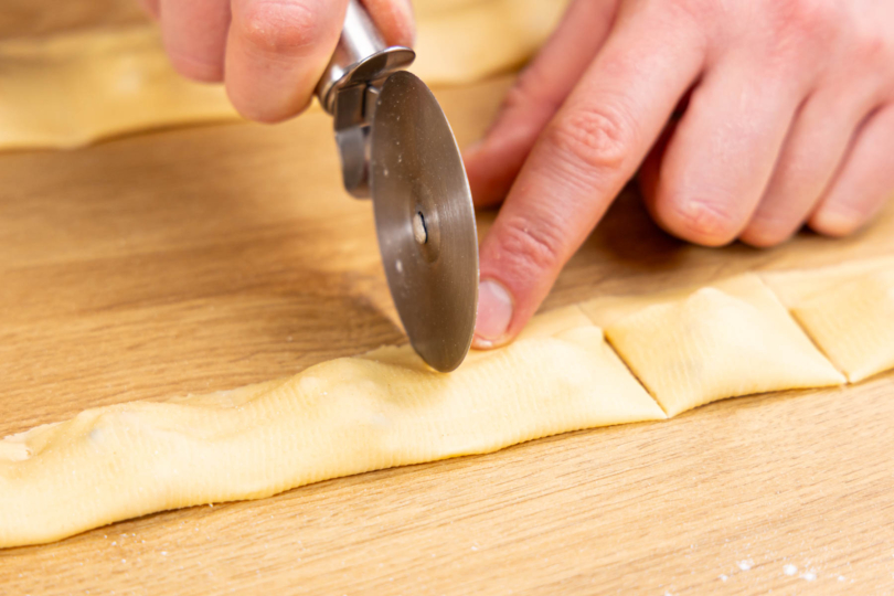 Tipp: Das funktioniert am besten mit einer Nudelmaschine. Alternativ nutzt du einfach dein Nudelholz.